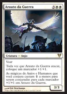 | Nome em Inglês: | Herald of War | | Nome em Português: | Arauto da Guerra | | Custo de Mana: |    | | Tipo: | Criatura - Anjo | | Texto: | Voar. Toda vez que Herald of War atacar, coloque um marcador +1/+1 nele. Mágicas de Anjo e de Humano que você Conjurar custam a menos para serem Conjuradas para cada marcador +1/+1 em Herald of War. | | P/T: | 3/3 | | Série: |  | | Raridade: | Raro | | Card: | 024 |