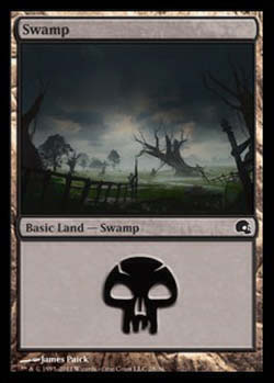 | Nome em Inglęs: | Swamp | | Nome em Portuguęs: | Sem nome em Portuguęs | | Tipo: | Terreno Básico - Pântano | | Texto: | : Adiciona a sua reserva de mana. | | Série: |  | | Outras: | | | Raridade: | Terreno Básico | | Card: | 028 |
