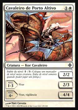 | Nome em Inglês: | Knight of Cliffhaven | | Nome em Português: | Cavaleiro de Porto Altivo | | Custo de Mana: |   | | Tipo: | Criatura - Kor Cavaleiro | | Texto: | Subir de Nível .