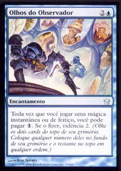 | Nome em Inglês: | Eyes of the Watcher | | Nome em Português: | Olhos do Observador | | Custo de Mana: |   | | Tipo: | Encantamento | | Texto: | Toda vez que você Conjurar uma Mágica Instantânea ou feitiço, você pode pagar . Se o fizer, Vidência 2. | | Série: |  | | Raridade: | Incomum | | Card: | 030 |