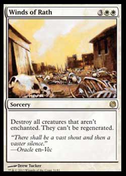 | Nome em Inglês: | Winds of Rath | | Nome em Português: | Sem nome em Português | | Custo de Mana: |    | | Tipo: | Feitiço | | Texto: | Destrói todas as criaturas que não estejam encantadas. Aquelas criaturas não podem ser Regeneradas. | | Série: |  | | Outras: | | | Raridade: | Raro | | Card: | 031 |