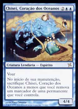 | Nome em Inglês: | Chisei, Heart of Oceans | | Nome em Português: | Chisei, Coração dos Oceanos | | Custo de Mana: |    | | Tipo: | Criatura Lendária - Espírito | | Texto: | Voar. No início de sua Etapa de Manutenção, sacrifice Chisei, Heart of Oceans a menos que você remova um marcador de uma Permanente que você controla. | | P/T: | 4/4 | | Série: |  | | Raridade: | Raro | | Card: | 032 |