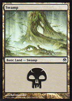 | Nome em Inglęs: | Swamp | | Nome em Portuguęs: | Sem nome em Portuguęs | | Tipo: | Terreno Básico - Pântano | | Texto: | : Adiciona a sua reserva de mana. | | Série: |  | | Outras: | | | Raridade: | Terreno Básico | | Card: | 032 |