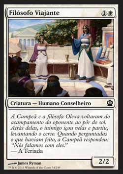 | Nome em Inglês: | Traveling Philosopher | | Nome em Português: | Filósofo Viajante | | Custo de Mana: |   | | Tipo: | Criatura - Humano Conselheiro | | Texto: | | | P/T: | 2/2 | | Série: |  | | Raridade: | Comum | | Card: | 034 |