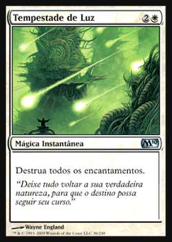| Nome em Inglês: | Tempest of Light | | Nome em Português: | Tempestade de Luz | | Custo de Mana: |   | | Tipo: | Mágica Instantânea | | Texto: | Destrói todos os encantamentos. | | Série: |  | | Outras: | | | Raridade: | Incomum | | Card: | 036 |