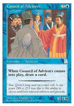 | Nome em Inglês: | Council of Advisors | | Nome em Português: | Sem nome em Português | | Custo de Mana: |   | | Tipo: | Criatura - Humano Conselheiro | | Texto: | Quando Council of Advisors entrar no Campo de Batalha, compre um card. | | P/T: | 1/1 | | Série: |  | | Raridade: | Incomum | | Card: | 040 |