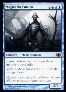 | Nome em Inglês: | Magus of the Future | | Nome em Português: | Magus do Futuro | | Custo de Mana: |     | | Tipo: | Criatura - Humano Mago | | Texto: | Jogue com o card do topo de seu grimório revelado. Você pode jogar o card do topo de seu grimório. | | P/T: | 2/3 | | Série: |  | | Raridade: | Raro | | Card: | 040 |