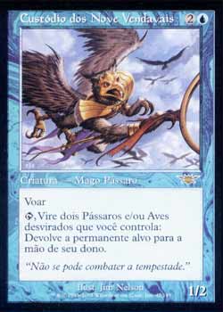 | Nome em Inglês: | Keeper of the Nine Gales | | Nome em Português: | Custódio dos Nove Vendavais | | Custo de Mana: |   | | Tipo: | Criatura - Ave Mago | | Texto: | Voar.