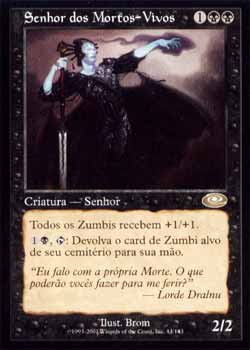 | Nome em Inglês: | Lord of the Undead | | Nome em Português: | Senhor dos Mortos-Vivos | | Custo de Mana: |    | | Tipo: | Criatura - Zumbi | | Texto: | As outras criaturas do tipo Zumbi ganham +1/+1.