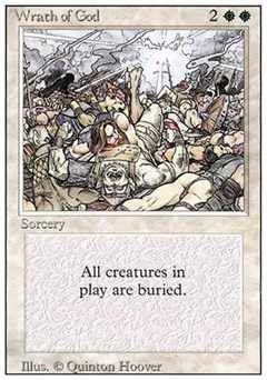 | Nome em Inglês: | Wrath of God | | Nome em Português: | Sem nome em Português | | Custo de Mana: |    | | Tipo: | Feitiço | | Texto: | Destrói todas as criaturas. Elas não podem ser Regeneradas. | | Série: |  | | Outras: | | | Raridade: | Raro | | Card: | 046 |