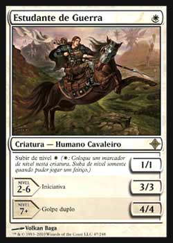 | Nome em Inglês: | Student of Warfare | | Nome em Português: | Estudante de Guerra | | Custo de Mana: |  | | Tipo: | Criatura - Humano Cavaleiro | | Texto: | Subir de Nível .