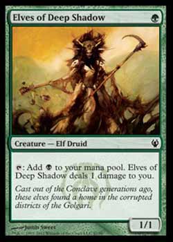 | Nome em Inglês: | Elves of Deep Shadow | | Nome em Português: | Sem nome em Português | | Custo de Mana: |  | | Tipo: | Criatura - Elfo Druida | | Texto: | : Adiciona a sua reserva de mana. Elves of Deep Shadow causa 1 ponto de dano a você. | | P/T: | 1/1 | | Série: |  | | Outras: | | | Raridade: | Comum | | Card: | 047 |