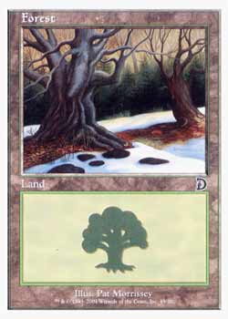 | Nome em Inglęs: | Forest | | Nome em Portuguęs: | Sem nome em Portuguęs | | Tipo: | Terreno Básico - Floresta | | Texto: | : Adiciona a sua reserva de mana. | | Série: |  | | Outras: | | | Raridade: | Terreno Básico | | Card: | 049 |