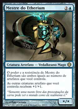 | Nome em Inglês: | Master of Etherium | | Nome em Português: | Mestre do Etherium | | Custo de Mana: |   | | Tipo: | Criatura Artefato - Vedalkeano Mago | | Texto: | O poder e a resistência de Master of Etherium são ambos iguais ao número de artefatos que você controla. As outras criaturas artefato que você controla ganham +1/+1. | | P/T: | */* | | Série: |  | | Outras: | | | Raridade: | Raro | | Card: | 049 |
