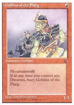 | Nome em Inglês: | Goblins of the Flarg | | Nome em Português: | Sem nome em Português | | Custo de Mana: |  | | Tipo: | Criatura - Goblin Guerreiro | | Texto: | Travessia de Montanha. Quando você controlar um Anão, sacrifique Goblins of the Flarg. | | P/T: | 1/1 | | Série: |  | | Outras: | | | Raridade: | Comum | | Card: | 051 |
