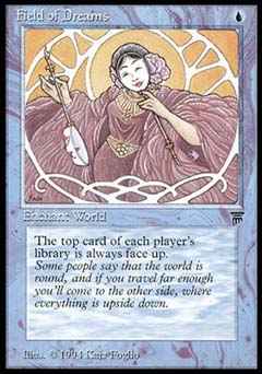 | Nome em Inglês: | Field of Dreams | | Nome em Português: | Sem nome em Português | | Custo de Mana: |  | | Tipo: | Encantar Mundo | | Texto: | Os jogadores jogam com o card do topo de seus grimórios revelado. | | Série: |  | | Raridade: | Raro | | Card: | 055 |