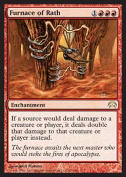 | Nome em Inglês: | Furnace of Rath | | Nome em Português: | Sem nome em Português | | Custo de Mana: |     | | Tipo: | Encantamento | | Texto: | Se uma fonte fosse causar dano a uma criatura ou jogador, aquela fonte causa o dobro de dano àquela criatura ou jogador ao invés. | | Série: |  | | Outras: | | | Raridade: | Raro | | Card: | 055 |