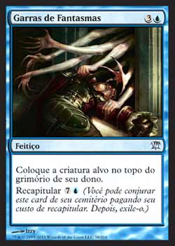 | Nome em Inglês: | Grasp of Phantoms | | Nome em Português: | Garras de Fantasmas | | Custo de Mana: |   | | Tipo: | Feitiço | | Texto: | Coloque a criatura alvo no topo do grimório de seu dono. Recapitular  . | | Série: |  | | Raridade: | Incomum | | Card: | 058 |