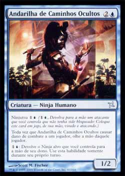 | Nome em Inglês: | Walker of Secret Ways | | Nome em Português: | Andarilha de Caminhos Ocultos | | Custo de Mana: |   | | Tipo: | Criatura - Humano Ninja | | Texto: | Ninjutsu  . Toda vez que Walker of Secret Ways causar dano de combate a um jogador, olhe a mão daquele jogador.