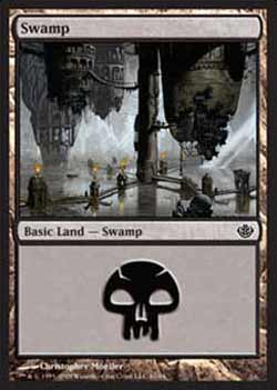 | Nome em Inglęs: | Swamp | | Nome em Portuguęs: | Sem nome em Portuguęs | | Tipo: | Terreno Básico - Pântano | | Texto: | : Adiciona a sua reserva de mana. | | Série: |  | | Outras: | | | Raridade: | Terreno Básico | | Card: | 061 |