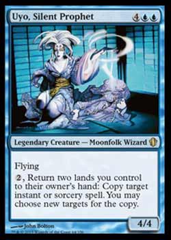 | Nome em Inglês: | Uyo, Silent Prophet | | Nome em Português: | Sem nome em Português | | Custo de Mana: |    | | Tipo: | Criatura Lendária - Cidadão-da-Lua Mago | | Texto: | Voar.