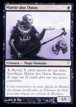 | Nome em Inglês: | Martyr of Bones | | Nome em Português: | Mártir dos Ossos | | Custo de Mana: |  | | Tipo: | Criatura - Humano Mago | | Texto: | , revele X cards pretos de sua mão, sacrifique Martyr of Bones: Exile até X cards de um único cemitério. | | P/T: | 1/1 | | Série: |  | | Raridade: | Comum | | Card: | 065 |