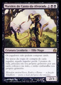 | Nome em Inglês: | Maralen of the Mornsong | | Nome em Português: | Maralen do Canto-da-Alvorada | | Custo de Mana: |    | | Tipo: | Criatura Lendária - Elfo Mago | | Texto: | Os jogadores não podem comprar cards. No início da Etapa de Compra de cada jogador, aquele jogador perde 3 pontos de vida, procura em seu próprio grimório por um card, coloca-o em sua própria mão, e então embaralha seu próprio grimório. | | P/T: | 2/3 | | Série: |  | | Raridade: | Raro | | Card: | 065 |