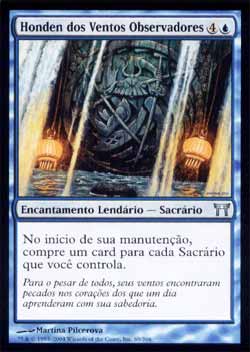 | Nome em Inglês: | Honden of Seeing Winds | | Nome em Português: | Honden dos Ventos Observadores | | Custo de Mana: |   | | Tipo: | Encantamento Lendário - Sacrário | | Texto: | No início de sua Etapa de Manutenção, compre um card para cada Sacrário que você controla. | | Série: |  | | Raridade: | Incomum | | Card: | 069 |