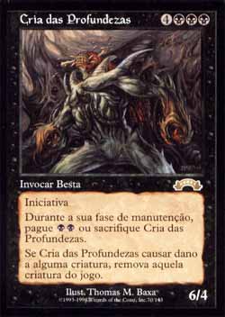 | Nome em Inglês: | Pit Spawn | | Nome em Português: | Cria das Profundezas | | Custo de Mana: |     | | Tipo: | Criatura - Demônio | | Texto: | Iniciativa. No início de sua Etapa de Manutenção, sacrifique Pit Spawn a menos que você pague  . Toda vez que Pit Spawn causar dano a uma criatura, Exile aquela criatura. | | P/T: | 6/4 | | Série: |  | | Raridade: | Raro | | Card: | 070 |
