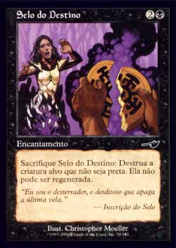 Sacrifique Seal of Doom: Destrói a criatura alvo que não seja preta. Ela não pode ser
