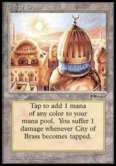 | Nome em Inglês: | City of Brass | | Nome em Português: | Sem nome em Português | | Tipo: | Terreno | | Texto: | Toda vez que City of Brass for virado, ele causa 1 ponto de dano a você.