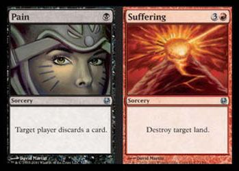 | Nome em Inglês: | Pain/Suffering | | Nome em Português: | Sem nome em Português | | Custo de Mana: | /  | | Tipo: | Feitiço/Feitiço | | Texto: | Card Duplo. O jogador alvo descarta um card. ou... Destrói o terreno alvo. | | Série: |  | | Outras: | | | Raridade: | Incomum | | Card: | 072 |