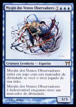 | Nome em Inglês: | Myojin of Seeing Winds | | Nome em Português: | Myojin dos Ventos Observadores | | Custo de Mana: |     | | Tipo: | Criatura Lendária - Espírito | | Texto: | Myojin of Seeing Winds entra no Campo de Batalha com um marcador de divindade sobre ele se você o tiver Conjurado de sua mão. Myojin of Seeing Winds é Indestrutível enquanto houver um marcador de divindade nele. Remova um marcador de divindade de Myojin of Seeing Winds: Compre um card para cada Permanente que você controla. Errata: esta última frase não saiu na versão em português. | | P/T: | 3/3 | | Série: |  | | Raridade: | Raro | | Card: | 075 |