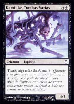 | Nome em Inglês: | Kami of Empty Graves | | Nome em Português: | Kami das Tumbas Vazias | | Custo de Mana: |   | | Tipo: | Criatura - Espírito | | Texto: | Transmigração da Alma 3. | | P/T: | 4/1 | | Série: |  | | Raridade: | Comum | | Card: | 075 |