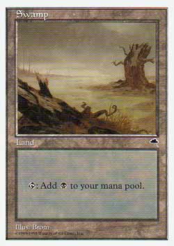| Nome em Inglęs: | Swamp | | Nome em Portuguęs: | Sem nome em Portuguęs | | Tipo: | Terreno Básico - Pântano | | Texto: | : Adiciona a sua reserva de mana. | | Série: |  | | Outras: | | | Raridade: | Terreno Básico | | Card: | 081 |