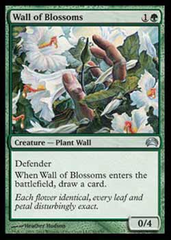 | Nome em Inglês: | Wall of Blossoms | | Nome em Português: | Sem nome em Português | | Custo de Mana: |   | | Tipo: | Criatura - Planta Barreira | | Texto: | Defensor. Quando Wall of Blossoms entrar no Campo de Batalha, compre um card. | | P/T: | 0/4 | | Série: |  | | Outras: | | | Raridade: | Incomum | | Card: | 081 |