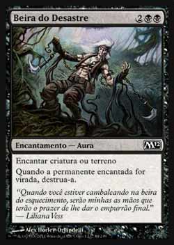| Nome em Inglês: | Brink of Disaster | | Nome em Português: | Beira do Desastre | | Custo de Mana: |    | | Tipo: | Encantamento - Aura | | Texto: | Encantar criatura ou terreno. Quando a Permanente encantada for virada, destrua-a. | | Série: |  | | Outras: | | | Raridade: | Comum | | Card: | 084 |