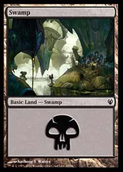 | Nome em Inglęs: | Swamp | | Nome em Portuguęs: | Sem nome em Portuguęs | | Tipo: | Terreno Básico - Pântano | | Texto: | : Adiciona a sua reserva de mana. | | Série: |  | | Outras: | | | Raridade: | Terreno Básico | | Card: | 085 |