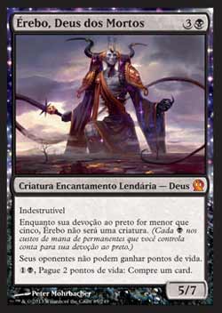 | Nome em Inglês: | Erebos, God of the Dead | | Nome em Português: | Érebo, Deus dos Mortos | | Custo de Mana: |   | | Tipo: | Criatura Encantamento Lendária - Deus | | Texto: | Indestrutível. Enquanto sua Devoção ao preto for menor que cinco, Erebos não é uma criatura. Seus oponentes não podem ganhar vida.