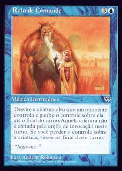 | Nome em Inglês: | Ray of Command | | Nome em Português: | Raio de Comando | | Custo de Mana: |   | | Tipo: | Mágica Instantânea | | Texto: | Desvire a criatura alvo que um oponente controla e você ganha o controle daquela criatura até o final do turno. Aquela criatura tem Ímpeto até o final do turno. Quando você perder o controle daquela criatura, vire-a. | | Série: |  | | Outras: | | | Raridade: | Comum | | Card: | 086 |