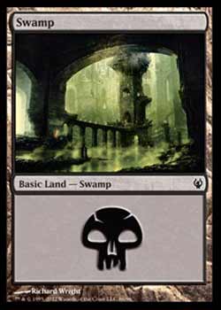| Nome em Inglęs: | Swamp | | Nome em Portuguęs: | Sem nome em Portuguęs | | Tipo: | Terreno Básico - Pântano | | Texto: | : Adiciona a sua reserva de mana. | | Série: |  | | Outras: | | | Raridade: | Terreno Básico | | Card: | 086 |