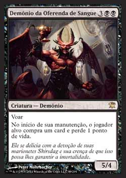 | Nome em Inglês: | Bloodgift Demon | | Nome em Português: | Demônio da Oferenda de Sangue | | Custo de Mana: |    | | Tipo: | Criatura - Demônio | | Texto: | Voar. No início de sua Etapa de Manutenção, O jogador alvo compra um card e perde 1 ponto de vida. | | P/T: | 5/4 | | Série: |  | | Raridade: | Raro | | Card: | 089 |