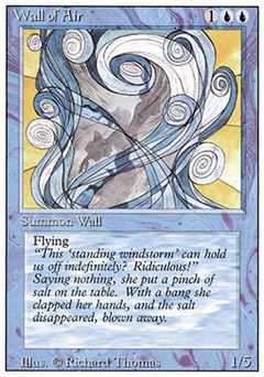 | Nome em Inglês: | Wall of Air | | Nome em Português: | Sem nome em Português | | Custo de Mana: |    | | Tipo: | Criatura - Barreira | | Texto: | Defensor, Voar. | | P/T: | 1/5 | | Série: |  | | Outras: | | | Raridade: | Incomum | | Card: | 090 |