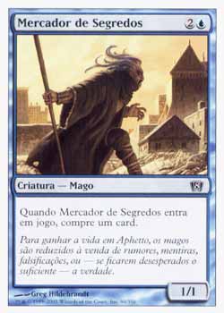 | Nome em Inglês: | Merchant of Secrets | | Nome em Português: | Mercador de Segredos | | Custo de Mana: |   | | Tipo: | Criatura - Humano Mago | | Texto: | Quando Merchant of Secrets entrar no Campo de Batalha, compre um card. | | P/T: | 1/1 | | Série: |  | | Outras: | | | Raridade: | Comum | | Card: | 090 |