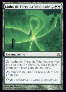 | Nome em Inglês: | Leyline of Lifeforce | | Nome em Português: | Linha de Força da Vitalidade | | Custo de Mana: |    | | Tipo: | Encantamento | | Texto: | Se Leyline of Lifeforce estiver em sua mão inicial, você pode começar o jogo com Leyline of Lifeforce no Campo de Batalha. Mágicas de criaturas não podem ser anuladas. Errata: não confundir com o card Leyline of Vitality, da série Magic 2011, que também foi traduzido para o português como Linha de Força da Vitalidade. | | Série: |  | | Raridade: | Raro | | Card: | 090 |