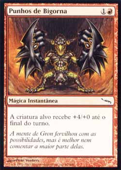 | Nome em Inglês: | Fists of the Anvil | | Nome em Português: | Punhos de Bigorna | | Custo de Mana: |   | | Tipo: | Mágica Instantânea | | Texto: | A criatura alvo ganha +4/+0 até o final do turno. | | Série: |  | | Outras: | | | Raridade: | Comum | | Card: | 091 |