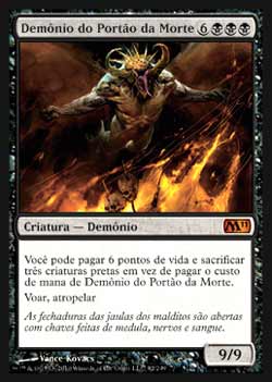 | Nome em Inglês: | Demon of Death's Gate | | Nome em Português: | Demônio do Portão da Morte | | Custo de Mana: |     | | Tipo: | Criatura - Demônio | | Texto: | Você pode pagar 6 pontos de vida e sacrificar três criaturas pretas ao invés de pagar o custo de mana de Demon of Death's Gate. Voar, Atropelar. | | P/T: | 9/9 | | Série: |  | | Raridade: | Mítico Raro | | Card: | 092 |