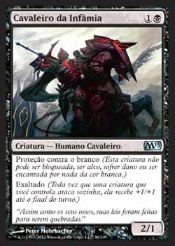 | Nome em Inglês: | Knight of Infamy | | Nome em Português: | Cavaleiro da Infâmia | | Custo de Mana: |   | | Tipo: | Criatura - Humano Cavaleiro | | Texto: | Proteção contra o branco. Exaltado. | | P/T: | 2/1 | | Série: |  | | Raridade: | Incomum | | Card: | 096 |