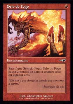 Sacrifique Seal of Fire: Seal of Fire causa 2 pontos de dano à criatura ou ao jogador alvo.