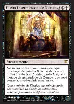 | Nome em Inglês: | Endless Ranks of the Dead | | Nome em Português: | Fileira Interminável de Mortos | | Custo de Mana: |    | | Tipo: | Encantamento | | Texto: | No início de sua Etapa de Manutenção, coloque no Campo de Batalha X fichas de criatura preta 2/2 do tipo Zumbi, onde X é metade do número de Zumbis que você controla, arredondado para baixo. | | Série: |  | | Raridade: | Raro | | Card: | 099 |